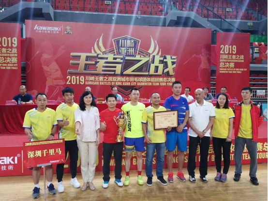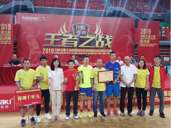 深圳千里馬戰(zhàn)隊(duì)的小伙伴們在2019年第五屆川崎王者之戰(zhàn)亞洲城市羽毛球巡回賽(總決賽)中勇奪冠軍! (冠軍獎(jiǎng)杯和獎(jiǎng)牌) (豐厚的冠軍獎(jiǎng)勵(lì)) 歷時(shí)6個(gè)多月的,創(chuàng)辦5年以來規(guī)模最大、參賽人數(shù)最多的的本屆川崎王者之戰(zhàn),終于在深圳坪山體育中心體育館拉開帷幕。參賽隊(duì)伍包括中國、韓國、越南、泰國、印尼、馬來西亞等六個(gè)國家,二十個(gè)賽區(qū)的冠軍隊(duì)伍。更令人激動的是,中國國家隊(duì)男單主教練李矛親臨現(xiàn)場觀看,為參賽隊(duì)伍進(jìn)行現(xiàn)場助力,并為冠軍隊(duì)伍頒獎(jiǎng)。 千里馬戰(zhàn)隊(duì)的小伙伴們奮力拼搏,過五關(guān)斬六將,憑借出類拔萃的競技水平和頑強(qiáng)拼搏的競技精神,奪得中年組冠軍。 深圳千里馬球會,這個(gè)“奮斗、愛、分享”的團(tuán)隊(duì),在賽場上披荊斬棘,敢于挑戰(zhàn)各路高手,懂得享受羽毛球運(yùn)動帶來的快樂。我們是最燃的一群人,日后定會佳績不斷,更上一層樓,綻放不一樣的體育風(fēng)采。