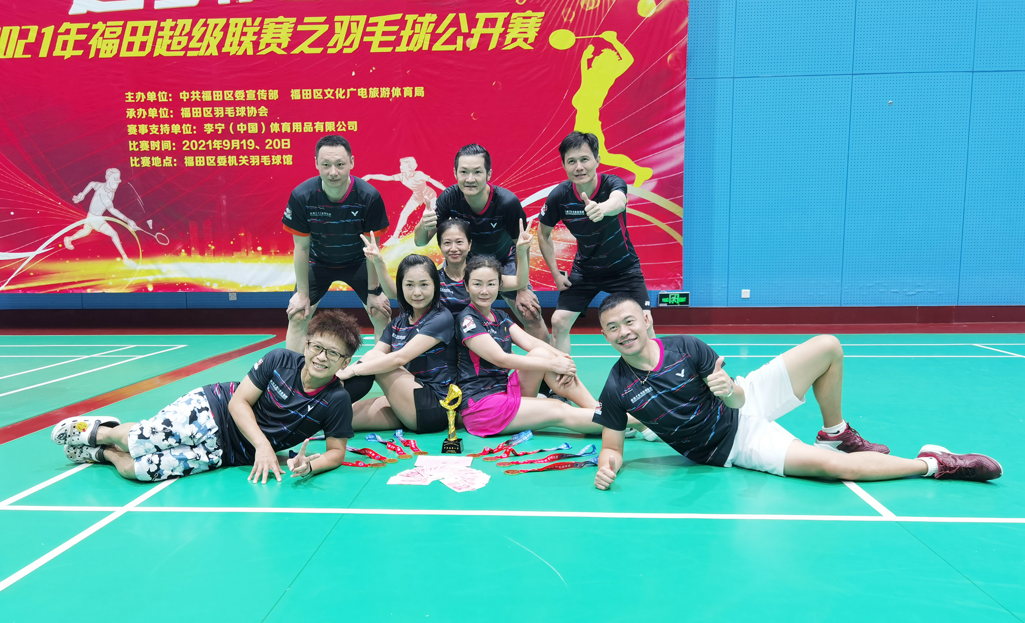 千里馬羽毛球球會中年組奪冠合影