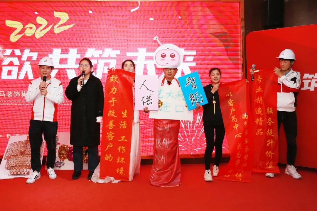 晚會在千里馬裝飾李向東董事長熱情洋溢的新年致詞中拉開序幕。李董首先代表集團向蒞臨晚會的各位嘉賓表示最熱烈的歡迎,向全體員工致以最誠摯的新年問候和衷心的祝福!他說,2022年我們要穩發展、穩現金流、穩隊伍建設,在變化多端的經濟形勢下,穩字當頭,平穩過度。愿我們不忘初心,砥礪前行!干杯!