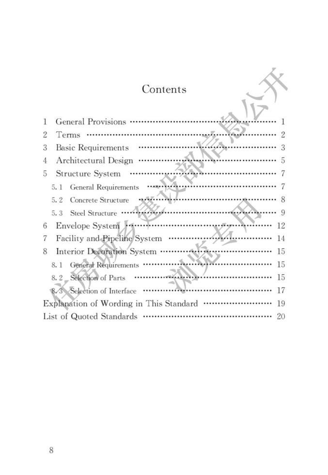 答:《標(biāo)準(zhǔn)》共分為8章。其中,“總則”和“術(shù)語”規(guī)定了《標(biāo)準(zhǔn)》的編制目的、總體原則、適用范圍和相關(guān)術(shù)語的基本概念;“基本規(guī)定”對設(shè)計(jì)選型應(yīng)遵循的基本原則、設(shè)計(jì)選型的主要內(nèi)容、部品部件及其接口的設(shè)計(jì)進(jìn)行了深入規(guī)定;“建筑設(shè)計(jì)”給出了建筑設(shè)計(jì)的總體原則,提出模塊及模塊組合的設(shè)計(jì)方法,提出了平立面標(biāo)準(zhǔn)化和多樣化設(shè)計(jì)的協(xié)調(diào)方法;“結(jié)構(gòu)系統(tǒng)”“外圍護(hù)系統(tǒng)”“設(shè)備與管線系統(tǒng)”和“內(nèi)裝修系統(tǒng)”從裝配式建筑四大系統(tǒng)的角度分別結(jié)合其特征明確了體系、性能指標(biāo)或部品部件的具體選型原則。
