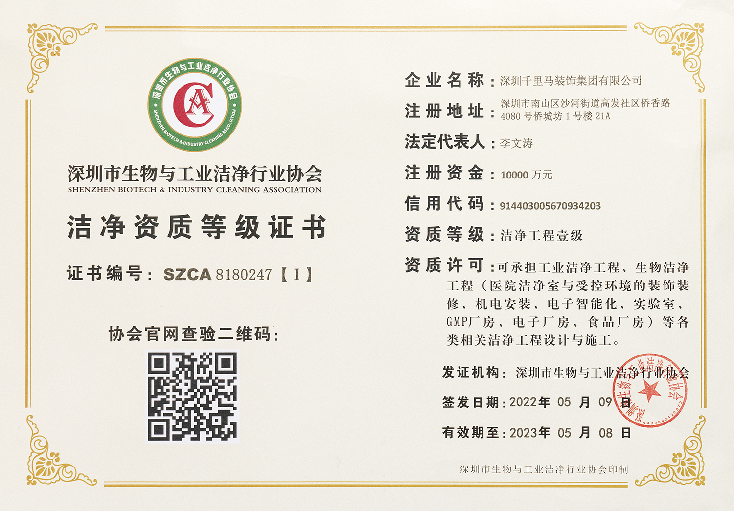 近日,千里馬裝飾集團取得潔凈工程壹級資質,成為深圳市生物與工業潔凈行業協會會員單位。該資質可承接工業潔凈工程、生物潔凈工程(醫院潔凈室與受控環境的裝飾裝修、機電安裝、電子智能化、實驗室、GMP廠房、電子廠房、食品廠房)等各類相關潔凈工程設計與施工,該資質的取得標志著千里馬裝飾集團正式進入潔凈行業市場,特別是醫院細分市場的專業設計與施工承接。