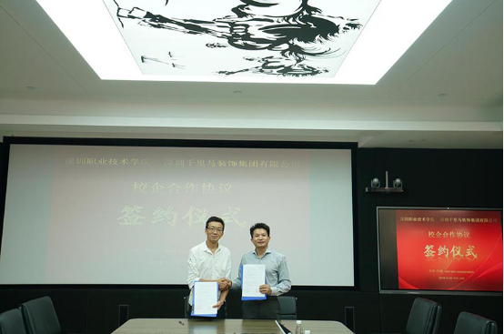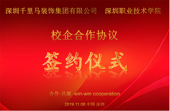 2019年11月8日,深圳千里馬裝飾集團有限公司(簡稱深圳千里馬裝飾集團)與深圳職業技術學院(簡稱深職院)校企合作簽約儀式在深圳千里馬裝飾集團總部舉行。