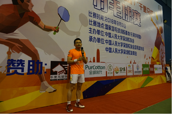 2018年9月8日以“羽樂(lè)共享,校友情真”為主題的第四屆人大校友(深圳)“千里馬杯羽毛球賽”在深圳東莞李永波學(xué)校開(kāi)賽,參加本次聯(lián)誼賽的一共有十三支隊(duì)伍,分別是EMBA隊(duì)、商學(xué)院隊(duì)、福建福磚隊(duì)、88去哪兒隊(duì)、五湖四海隊(duì)、無(wú)影腳隊(duì)、人參隊(duì)、商會(huì)隊(duì)、捉妖隊(duì)、勞人混個(gè)獎(jiǎng)隊(duì)等。