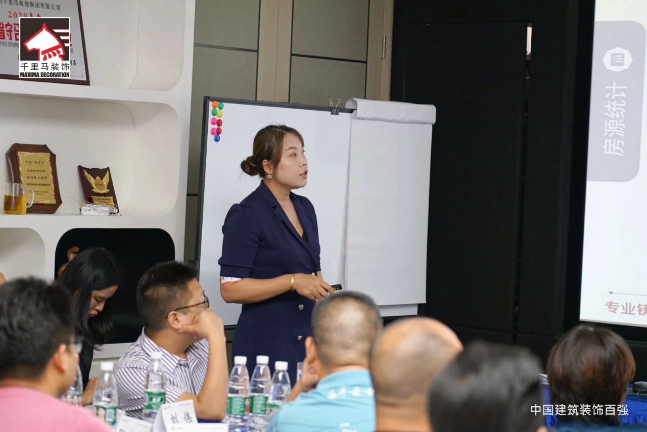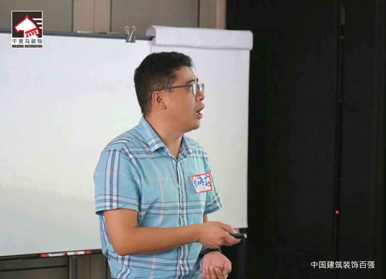 邁進會議室,迎面而來的是擺放得整整齊齊的藍色課桌,抬頭看,清新怡人的藍白色相間的橫幅映入眼簾——“深圳千里馬裝飾集團MTP管理才能發展培訓”,原來是為了提升中層管理