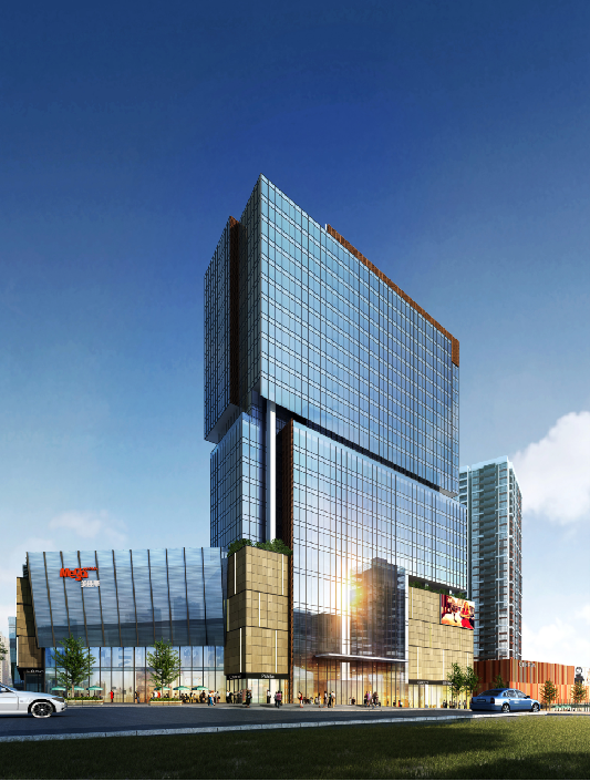 本項目是一個商業綜合體。我司承接了門窗、玻璃幕墻、鋁板幕墻、陶板干掛部分,項目分兩期建成,合同總金額3400萬元,工期350天。